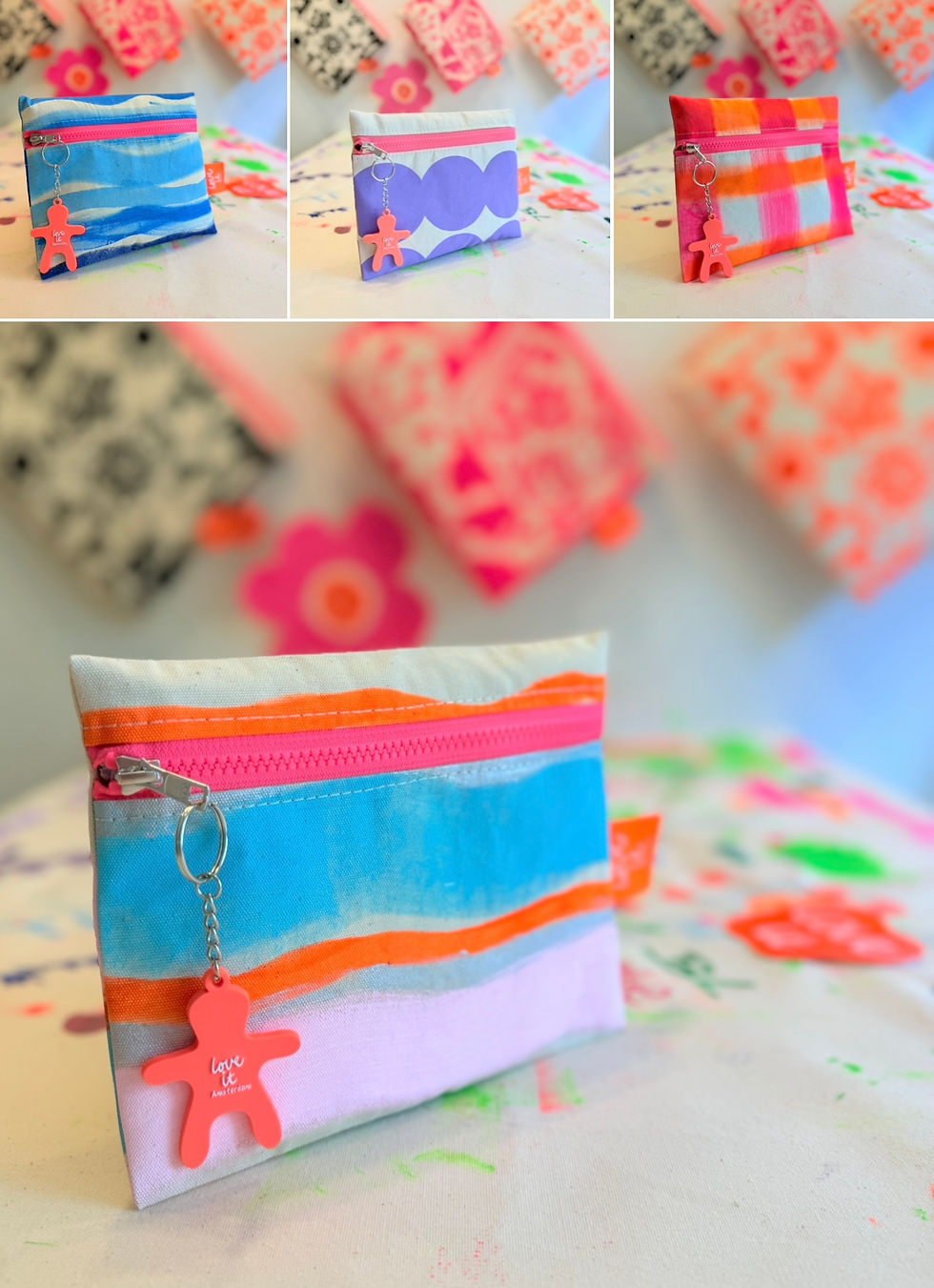 Hand drawn pouch made from TYVEK. Looks like paper, feels like paper, sounds like paper. Lightweight,...half the weight of an egg, foldable, funny, crunchy all purpose water resistant bag. You can wash them! Neon YKK zippers
